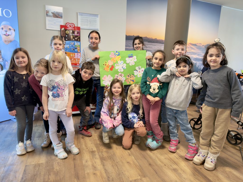 Im Rahmen der Wirkzeit besuchten in der vergangenen Woche erneut Schülerinnen und Schüler der Grundschule an der Berghoferstraße die Reha-Klinik Allgäu in Sonthofen. Viele Erstklässler sowie Kinder der vierten Klasse aus der Projektgruppe gestalteten gemeinsam in der Mensa der Reha-Klinik eine kurzweilige Zeit für die Seniorinnen und Senioren.